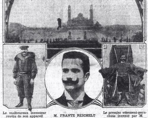 Franz Reichelt, pria berkebangsaan Prancis (kelahiran Austria) mencari nafkah sebagai penjahit. Waktu senggang ia gunakan untuk merancang parasut. Maklum, di awal abad 20 pesawat terbang masih jadi produk baru.